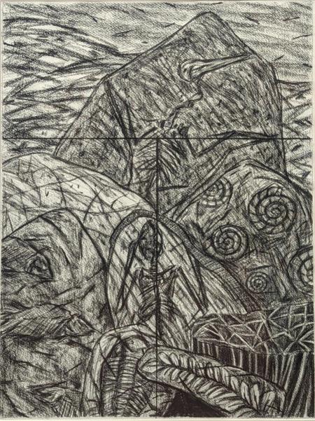 Graham Snow (British, b.1948), Fossil Study, 1988, charcoal drawing, H.91cm W.60