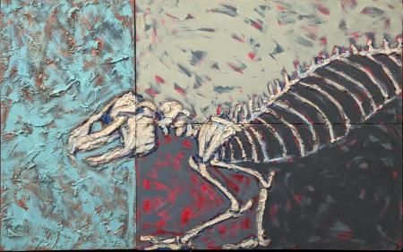 Graham Snow (British, b.1948), Predator, 1990, oil and Weymouth sand on board, signed in marker pen to verso, H.61cm W.91cm