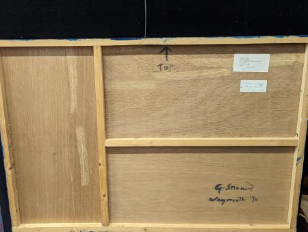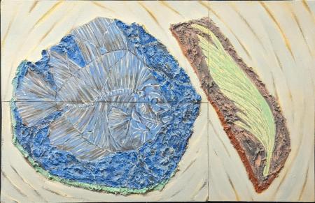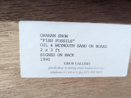 Graham Snow (British, b.1948), Fish Fossils, 1990, oil and Weymouth sand on board, H.91cm W.60cm